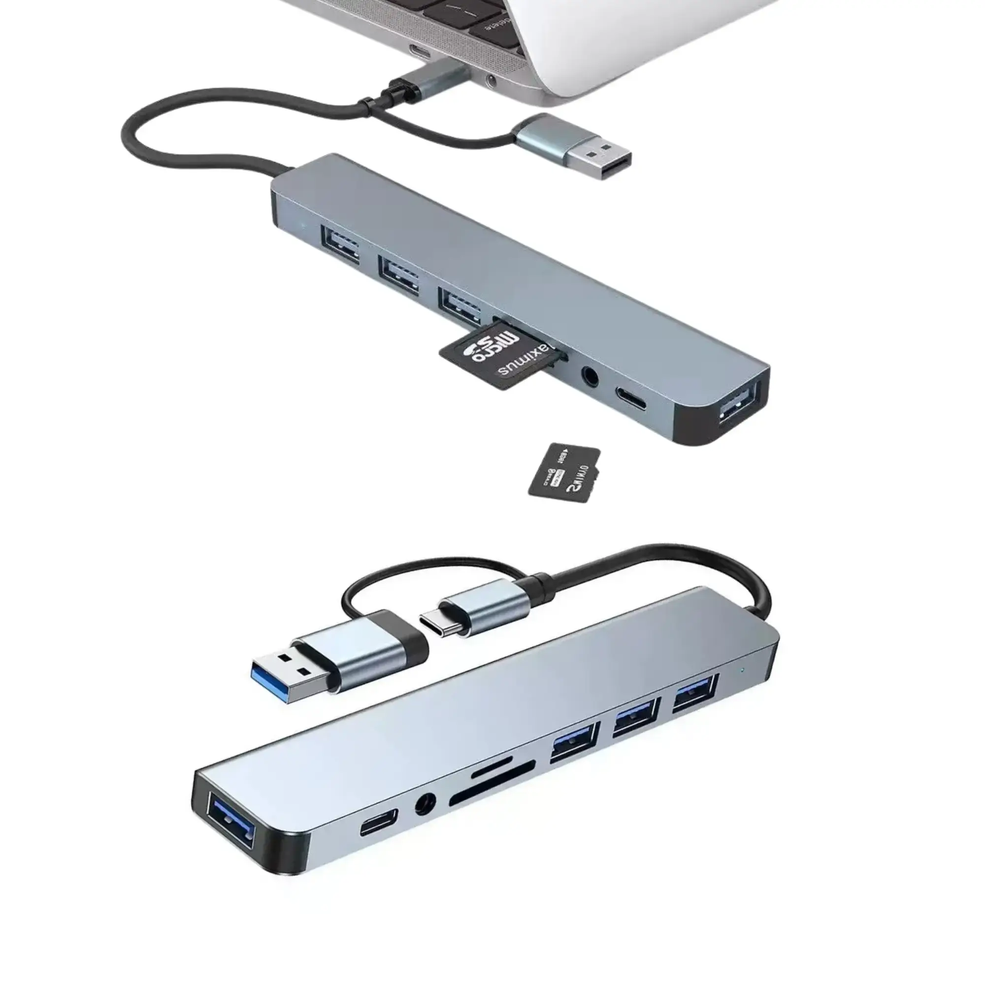 🔌 HUB 8-en-1 de Acero Inoxidable – Doble Conector Type-C & USB-A
