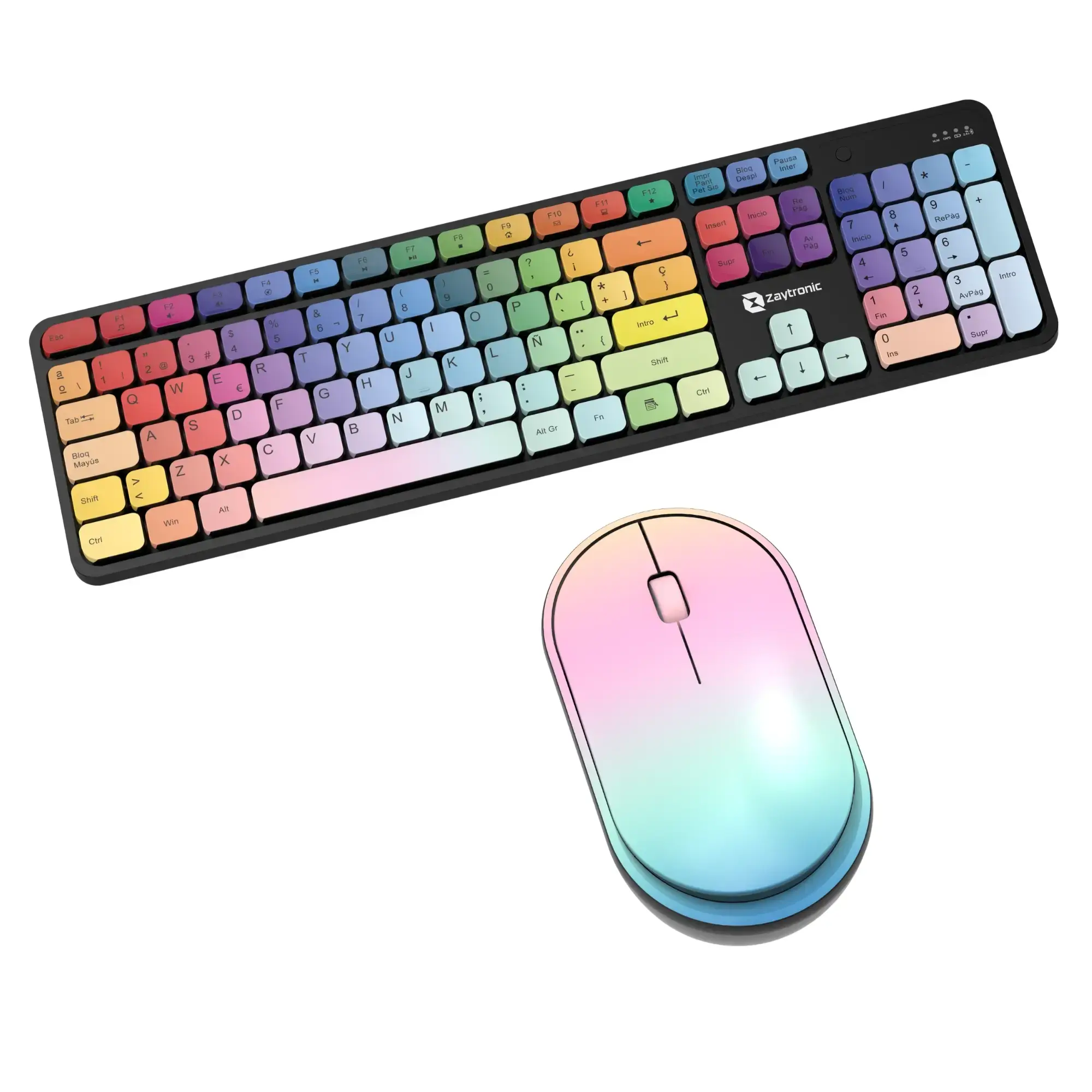 | ⌨️ Teclas | Tipo chocolate, impresión multicolor/arcoíris de alta calidad, silenciosas y grandes para escritura cómoda |